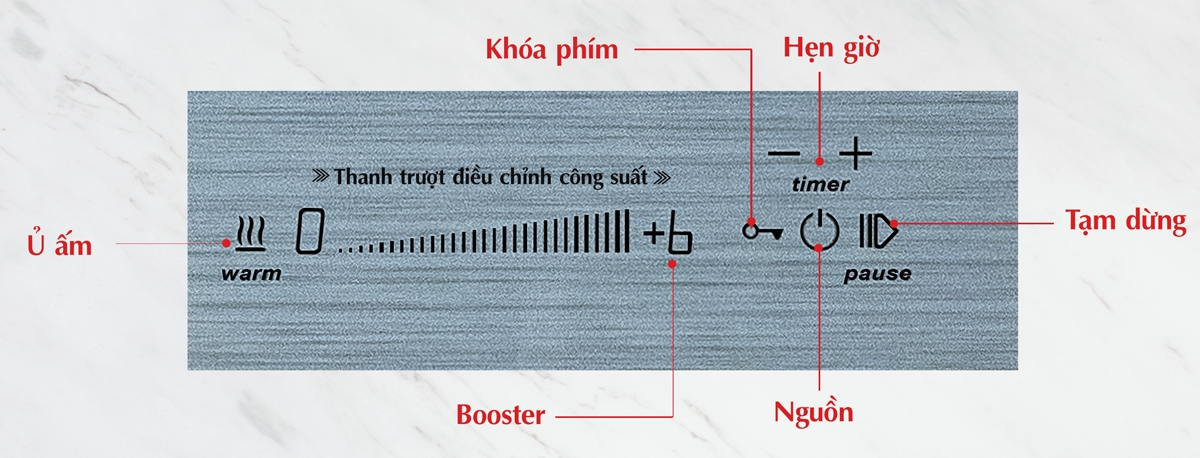 - Bếp được điều khiển bằng dạng trượt slide, bàn phím siêu nhạy kể cả khi tay ướt.