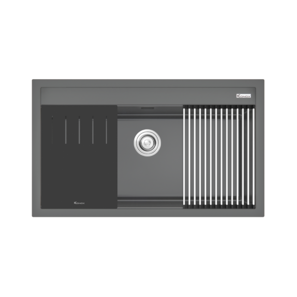 Chậu rửa bát đá Granite Sink Terra 790S Grey nằm trong bộ sưu tập chậu vòi đá cao cấp của Konox – Kiệt tác Ý trong lòng bếp Việt.
