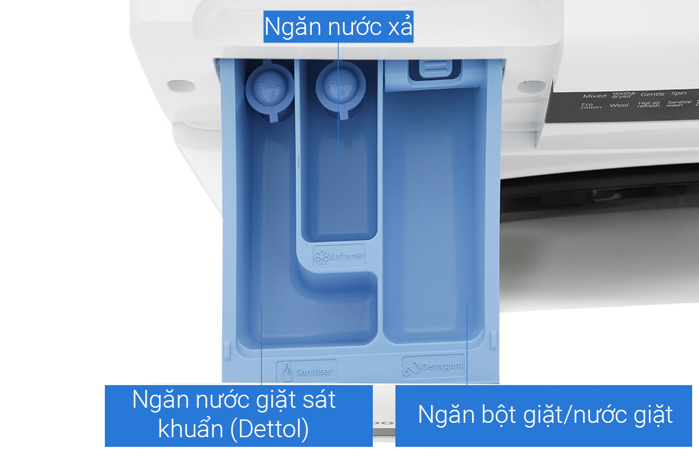 - Chương trình giặt sát khuẩn Sanitize Wash giúp loại bỏ vi khuẩn trong quá trình giặt, chống dị ứng phù hợp với gia đình có trẻ nhỏ, hay những người dễ bị mẩn đỏ do có làn da nhạy cảm.